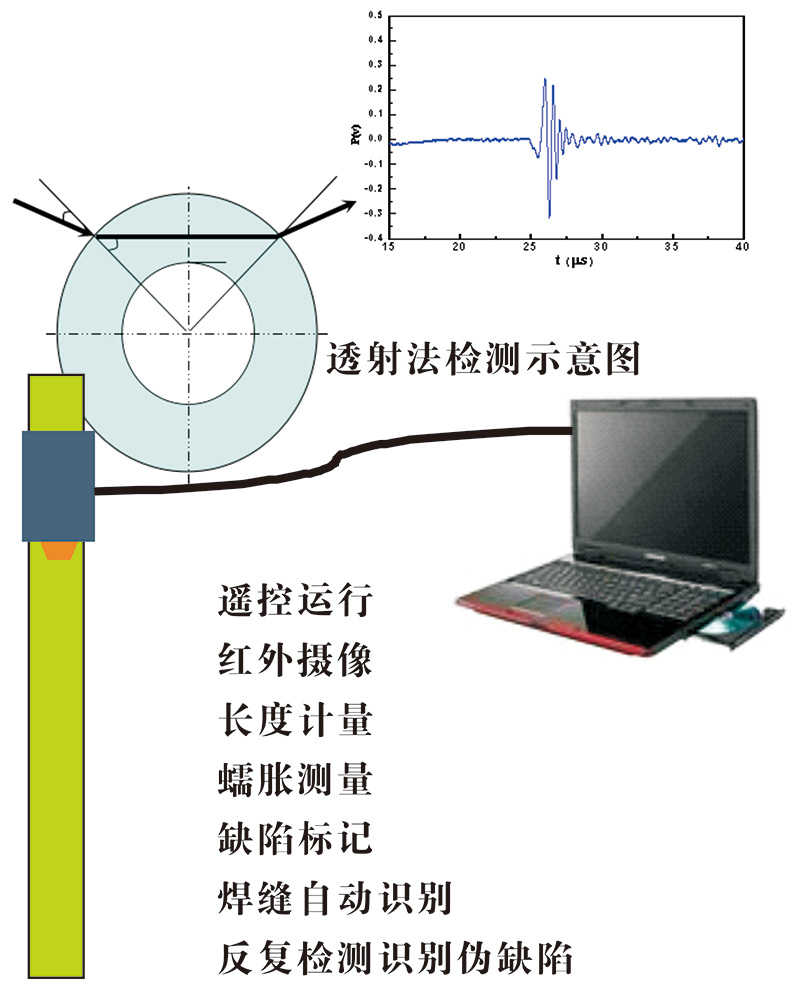国内较早开展高温炉管检测技术研究的是大连理工大学,从1983年开始就着手此项技术的研究,成功地开发了利用透射法检测HK40材料的高温炉管,波形清晰,定性准确,并在炉管的损伤形式、级别评定及寿命预测方面进行了大量的研究工作,成功地替代国外技术并开始在全国进行了推广应用。