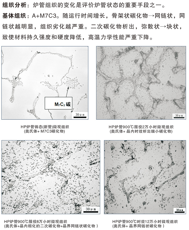 服役过程中会发生蠕变、热疲劳、氧化、渗碳、腐蚀等现象,造成炉管性能劣化甚至失效。任何一根炉管的损坏,均将造成整个装置停车,除造成巨大的经济损失外,还极易引发火灾、爆炸和人身伤亡事故。